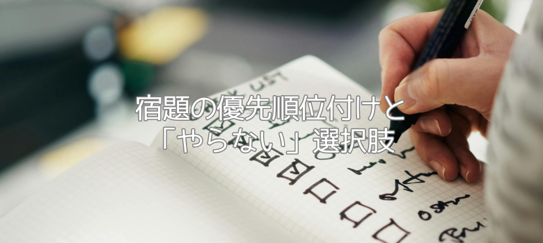 代替案としては、すべてをこなそうとせず、基礎問題に優先的に取り組む方法があります。理解が不十分な単元は基本問題を確実に定着させ、難度の高い問題や時間がかかりすぎる課題は一時的に見送る判断も有効です。