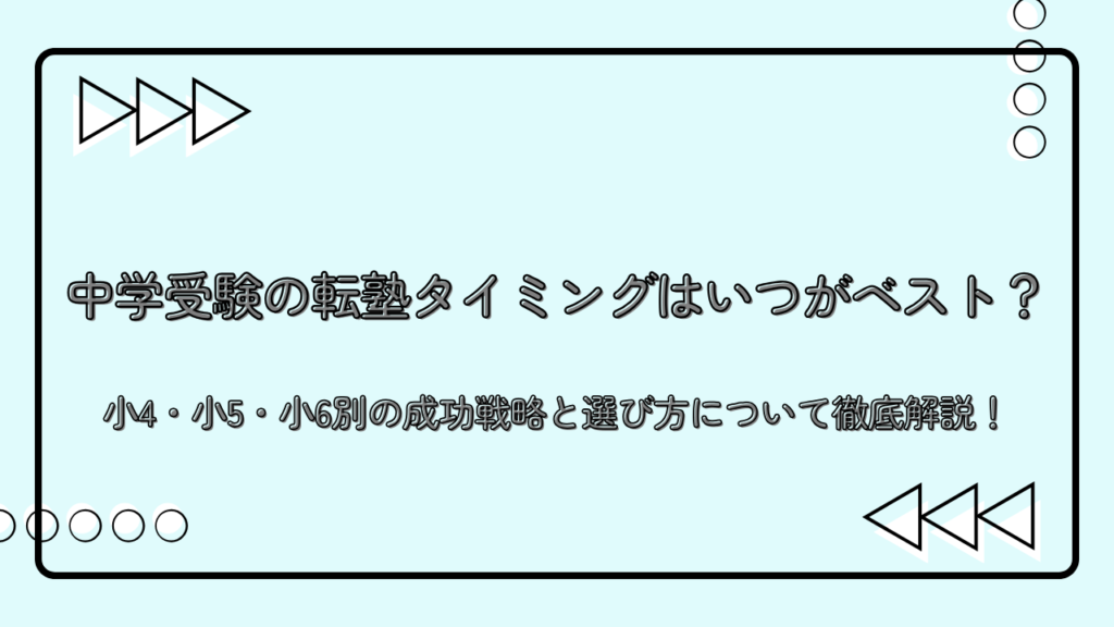 中学受験において、転塾のタイミングは学習の成果や子どもの精神面に大きく影響します。